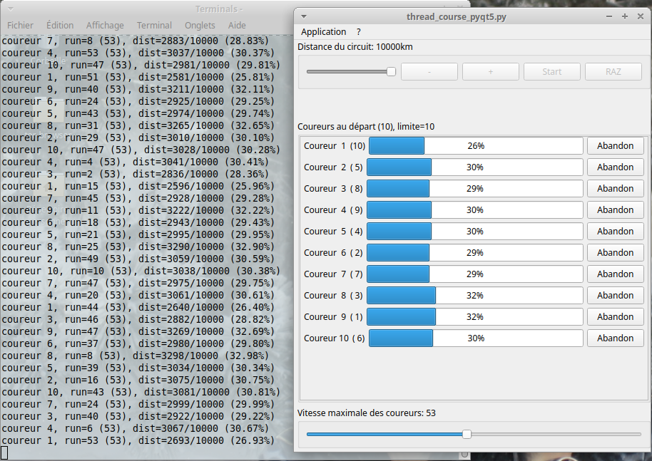 Pour enchainer sur Le QThread de Tyrtamos, ici un petit jeu de course de threads.